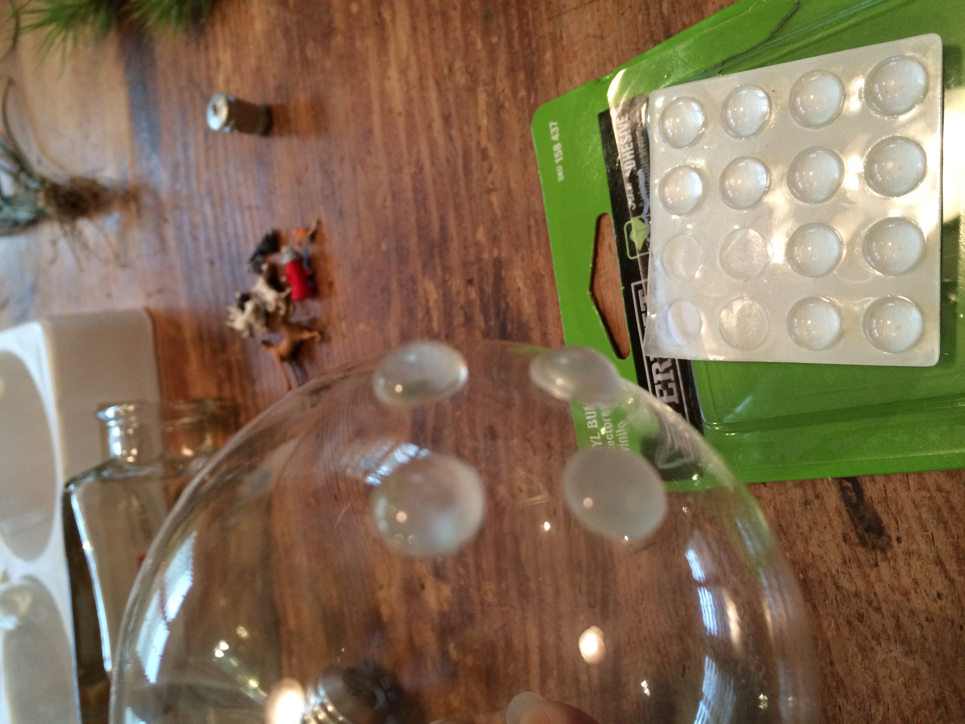 Take the ornament and add 4 bumpers to the bottom of the glass so the ornament will stand upright.