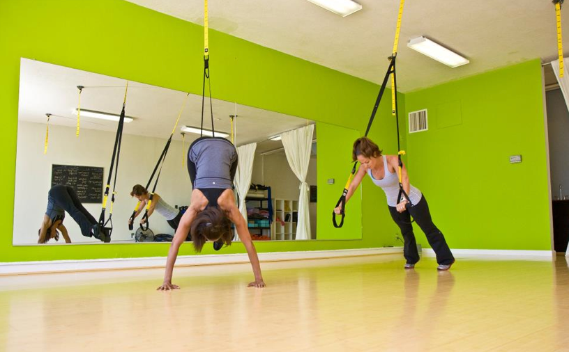 I was still determined to find some type of fitness class that would work for me — that’s when I stumbled upon TRX (Total Body Resistance Exercise). TRX, as seen in the picture (courtesy of The Fuse Fitness, Kensington, CA), is a suspension training tool that uses your body weight as resistance against gravity.